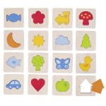 Съдържание: 16 дървени плочки, 16 дървени фигури, 1 торбичка от плат