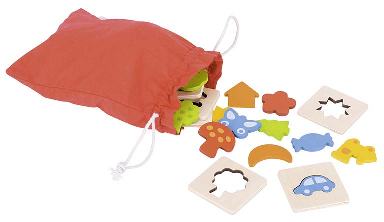 Липсващата част, която съответства на избраната форма, трябва да бъде открита в памучната торбичка чрез опипване. Възможни са няколко варианта на играта и всички те насърчават тактилните възприятия.