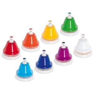 Настолни музикални камбанки с бутон – комплект от 8 броя са образователен музикален инструмент, създаден за ранно музикално обучение чрез игра. Всяка камбанка е в различен цвят и издава различен тон при натискане на бутона, което улеснява разпознаването на звуци и последователности. Формата и начинът на използване ги правят подходящи за структурирани музикални и ритмични упражнения.