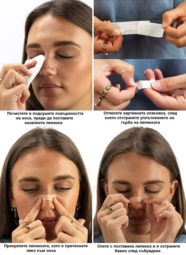Назалните лепенки се носят по време на сън. Преди да си легнете: