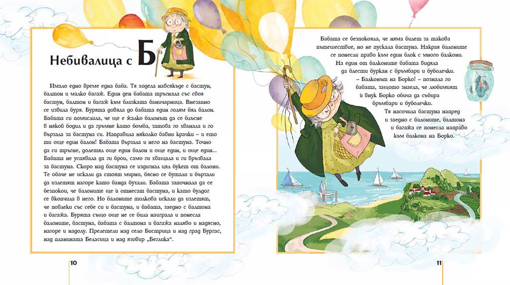 Невероятни истории, забъркани с главозамайващо въображение, с много смях и неудържимо веселие. През тях ще ви преведат буквите от азбуката и ще забавляват децата, които ги слушат, и възрастните, които им четат.
