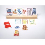 Мотиви на картите: гащеризон, панталони, къси панталонки, пола, рокля, пуловер, риза, блуза, тениска, маратонки, ботуши, сандали, чехли, яке, палто, дъждобран, чорапогащник, бельо, шорти, бански костюм, бикини, шапка, колан, ръкавици, шал, слънчеви очила, вратовръзка, бижута, пижама и др.