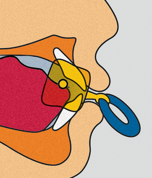 Орален тренажор, представляващ твърда пластмасова пластина с подвижно топче, закачено на медицинска тел. Подвижното топче насърчава движението на езика в посока към небцето, което пък води до затваряне на устата. Тренажорът подпомага правилното позициониране на езика в спокойно състояние – допиращ леко небцето зад горните предни зъби.