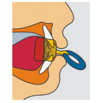ПоставянеТренажорите MUPPY се използват подобно на бибероните залъгалки. Поставете пластината между устните и зъбите. Металната решетка ляга зад зъбите и не позволява на езика да застане между зъбите.