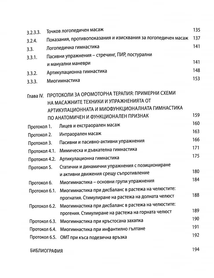 За пръв път на български език в литература по логопедия от този ранг се описва подробно влиянието на вредните навици в оралната област и на ортодонтските нарушения върху храненето и говора, като се прави мост между логопедичната терапия и ортодонтското лечение. Приносно е както детайлното систематизиране на средствата на логопедичната оромоторна терапия според принципите на медицинската рехабилитация, така и описанието на миогимнастиката като система от упражнения, различна от класическата артикулационна гимнастика. Специално внимание е отделено на пасивните средства на оромоторната терапия: масаж, постизометрична релаксация, както и на мануалните и постурални маневри, прилагани при дисфагия и някои форми на дисфония.