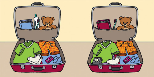 Кутията съдържа 30 двойки картинни карти. Макар и привидно еднакви, всяка двойка карти се различава в детайлите си. В играта по двойки, всеки играч получава по една карта. Двамата трябва да си помагат, за да открият разликите в картите. Те могат да си задават въпроси за наличието на даден обект в картинката, но не и да виждат картата на другия играч. Всеки път, когато се открие разлика, се обръща една от картите, която има въпросителен знак от едната страна и удивителен – от другата. Колкото повече карти се отварят, толкова по-интересна става играта. Играчът, който открие последната разлика и отвори последната карта, е победител.