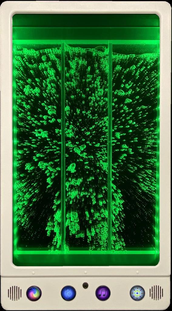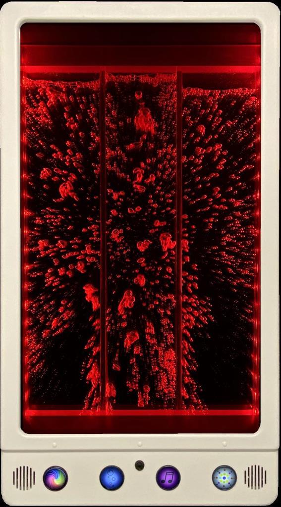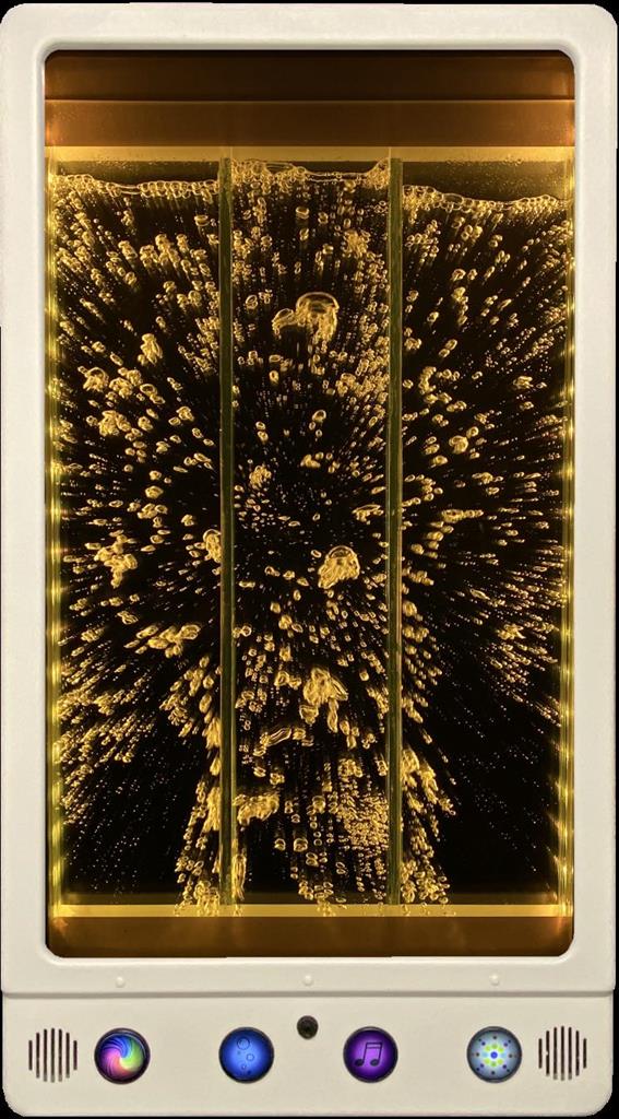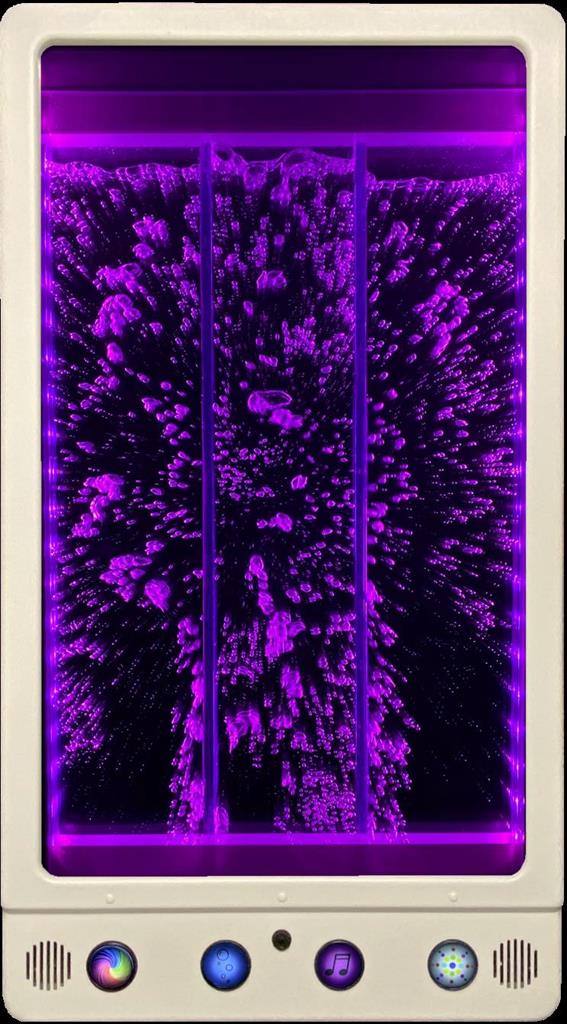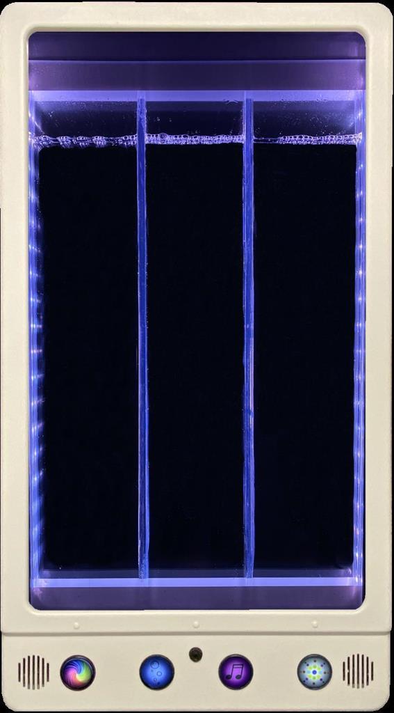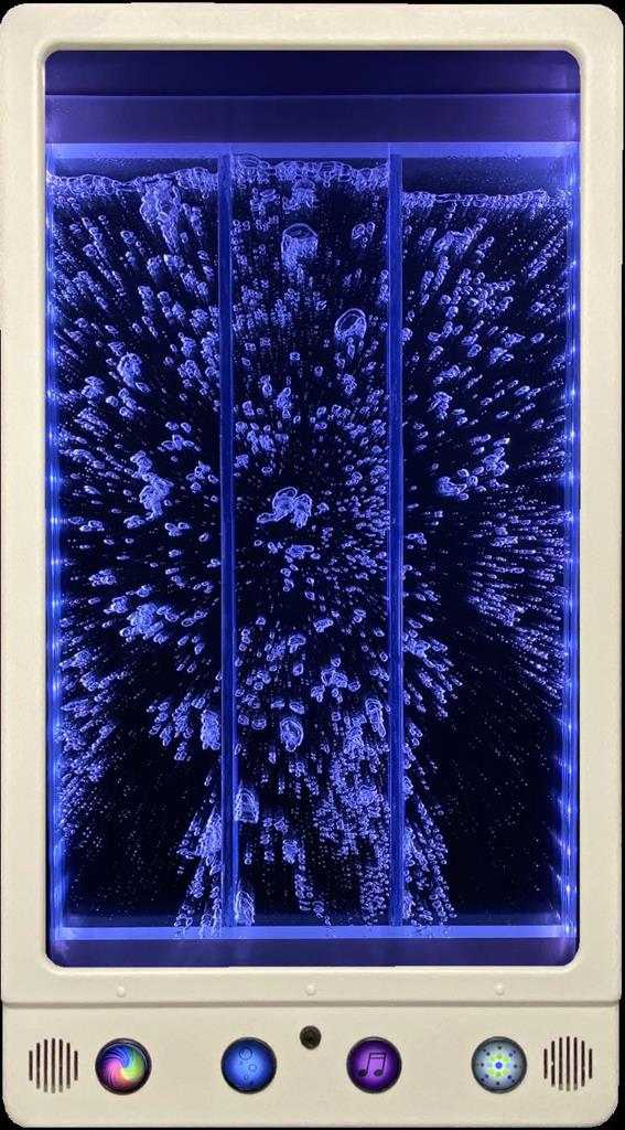 Интерактивен стенен панел за визуална и слухова стимулация. Тънък, лек и с изчистен дизайн. Голям екран, осигуряващ уникално интерактивно изживяване. Интуитивно управление с 4 бутона (за контрол на цветовете, мехурчетата и музиката), 2 вградени високоговорителя отпред и дискретен контролен панел отгоре (за да не разсейва потребителите).