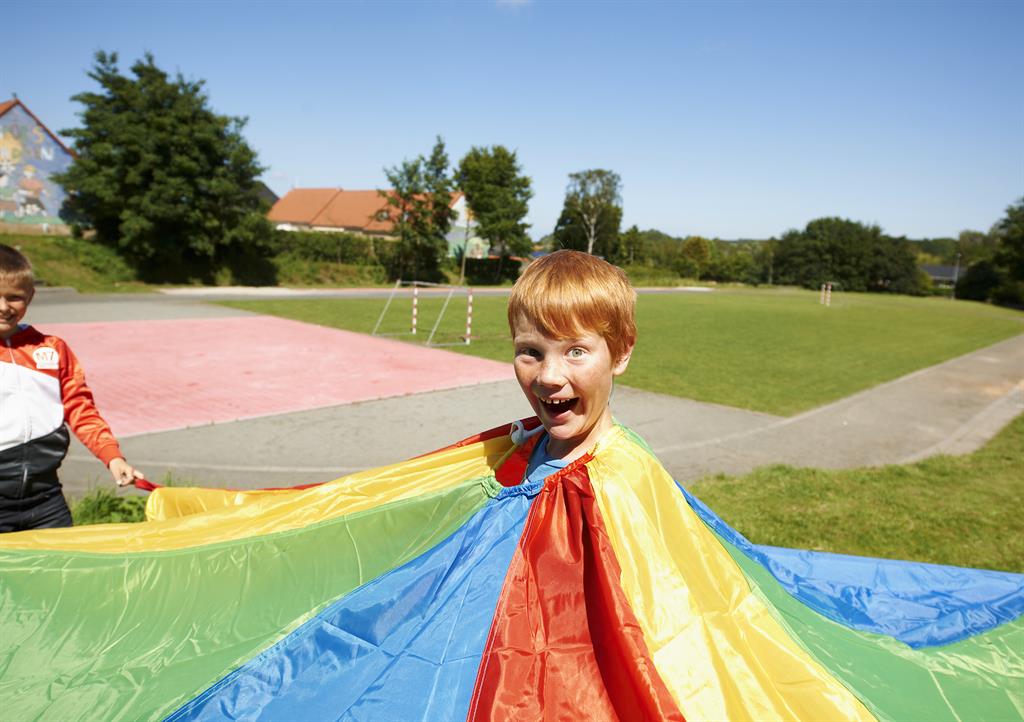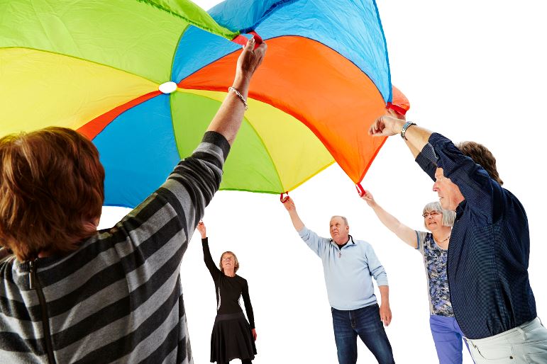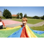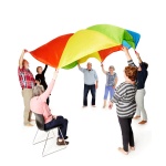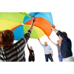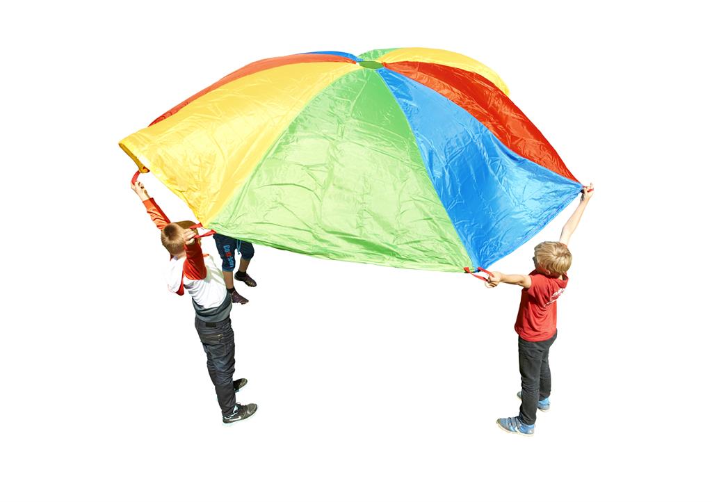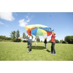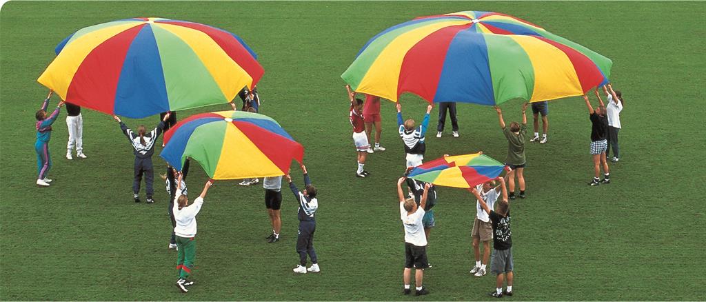 Играта с парашут осигурява двигателна активност за цялото тяло за хора от всякакви възрасти. Това е чудесно средство за развитие на базовата координация на тялото. Изработен е от цветен, супер лек, пожароустойчив полиестер с много здрави дръжки. Може да се използва за множество игри и дейности. Здраво (10 мм) въже е зашито по външния ръб на парашута, което позволява той да се използва от повече хора, отколкото са ръкохватките.
