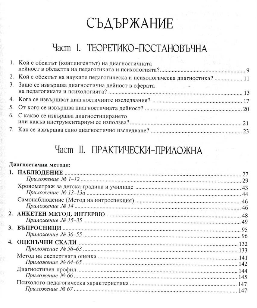 В изданието са включени подбрани от световната и собствената практика информативни и лесно приложими диагностични методи. Разяснена е тяхната същност и предназначение съобразно изследователските задачи и възрастовите различия.