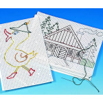 Листове картон с перфорирани дупчици и отпечатани мотиви. Децата могат да използват гърба на листовете, където няма отпечатани мотиви, за да създават свои собствени. Съдържание: 40 листа от бял катрон Размери: 25×17 см