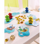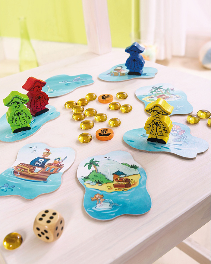 Увлекателна състезателна игра, която учи детето и да печели, и да губи. Пиратите кръстосват морета и океани в търсене на острови със скрити съкровища. Когато имат късмет, те откриват и събират все повече скъпоценности. Целта им е да съберат 5 скъпоценни камъка. По пътя си обаче срещат и други пирати, които търсят съкровищата и … дуелът между тях е неизбежен. Кой ще победи и кой пръв ще открие 5-те скъпоценни камъка – зависи единството от късмета им! Успех!