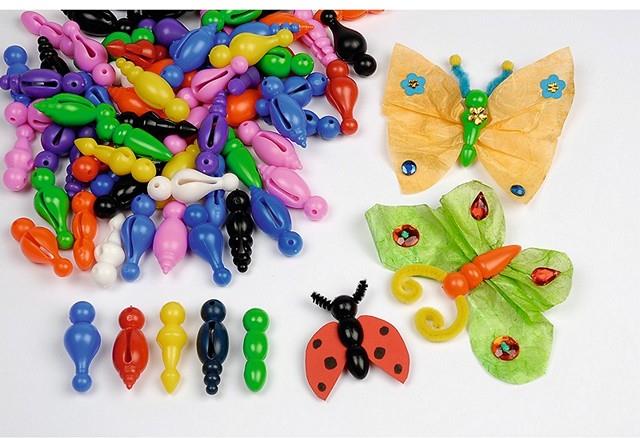 Комплект тела на насекоми, изработени от пластмаса в 5 различни форми и 8 различни цвята с отвори за промушване на крила от прозрачна или разтегателна хартия, фолио и други материали. Върху главите има отвори, в които могат да се мушнат лулички, за да се направят пипала. Телата могат да се използват многократно, защото при изработката на насекомото не се прилага лепене на материали.