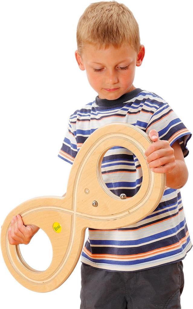 Полегнала осмица – игра за билатерална координация е терапевтична и образователна игра, която развива синхронната работа на двете ръце, концентрацията и фината моторика. Чрез водене на металните топчета по улеите с форма на „∞“, децата (и възрастните) упражняват движения, които стимулират координацията между лявата и дясната половина на тялото – това е основата на така наречената билатерална координация.
