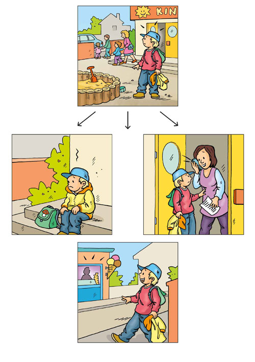 Всяко дете може да попадне в необичайна ситуация, в която се налага да помисли, преди да действа. Като използват илюстрирания проблем, случка или опасна ситуация, децата ще се подготвят да реагират правилно в такива моменти. Към всяка ситуация са предложени три възможни изхода, което допълнително стимулира децата да обмислят решението си, преди да направят избор. Различните ситуации и изходи от тях, представени в картите, улесняват говоренето по дадени теми, стимулират децата да споделят своя собствен опит, развиват логическото им мислене, наблюдателността и уменията да се изразяват вербално.