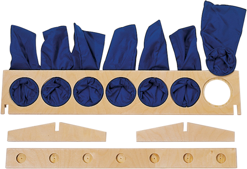 Съдържание / материали: Настолна поставка със 7 кръгли отвора, към които са прикрепени тактилни торбички