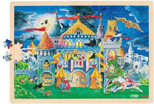 Пъзел в дървена рамка на тема „Приказен замък“. Съдържание: 192 елемента Материал: дърво Размери: 46,5х33х1 см