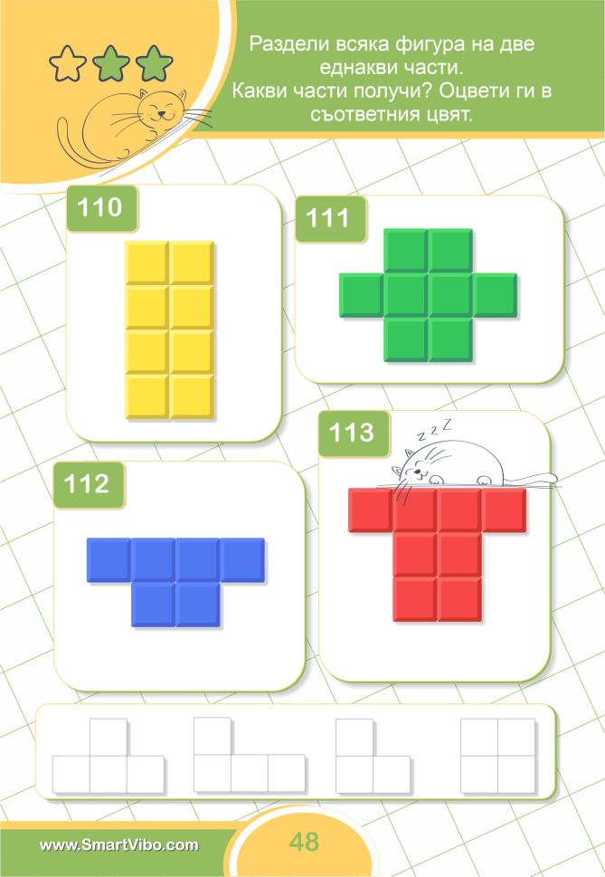В книжката са вкючени много разнообразни занимания, които предлагат забавен начин за: