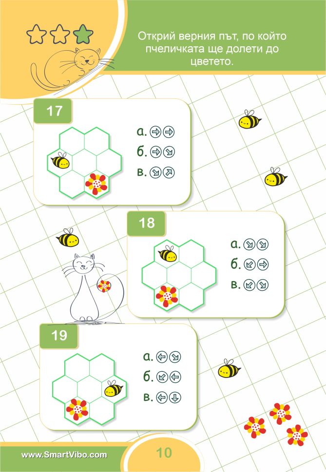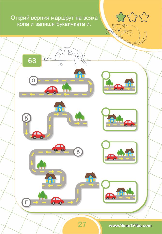 Книжката ще помогне на детето по-лесно да се ориентира в пространството, като подобри концентрацията му и вниманието към детайлите. Съдържа отговори.