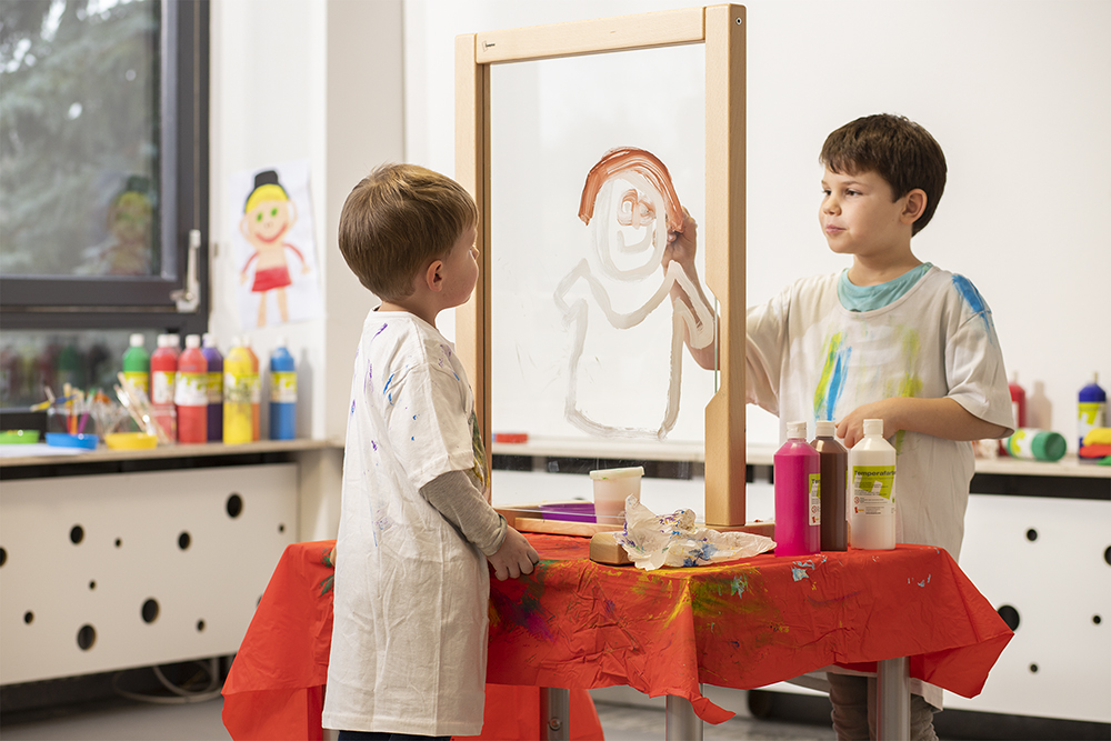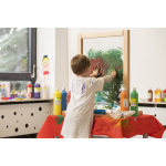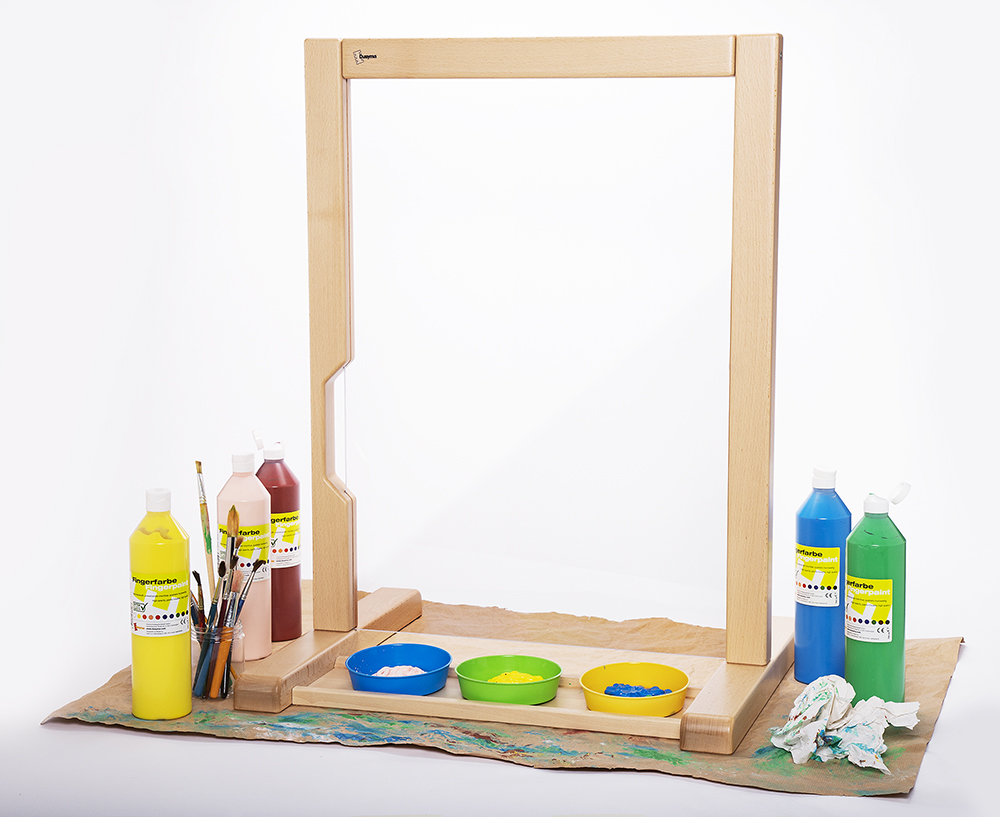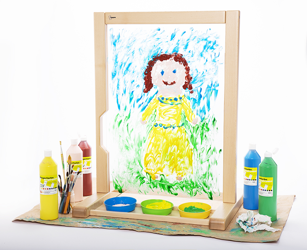 Прозорецът за рисуване е лек и може лесно да се носи с помощта на дръжката. Рафтът в основата осигурява място за бои и четки.