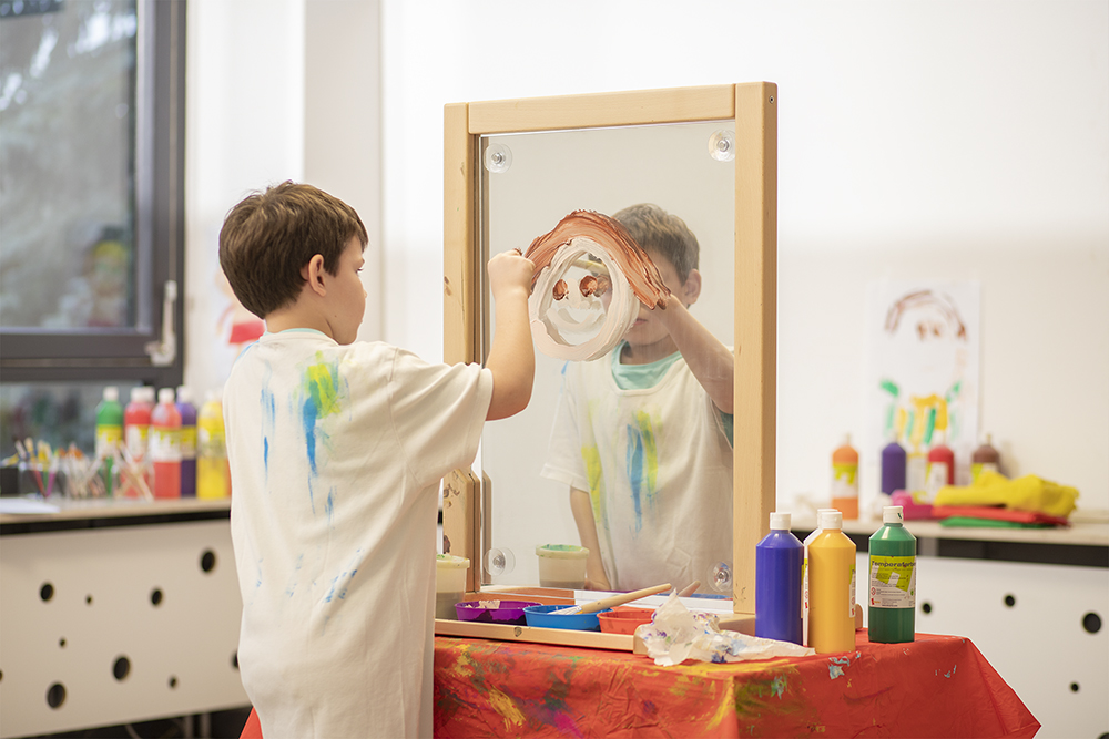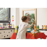 Погледнете внимателно и нарисувайте върху стъклото това, което виждате. Ако боята все още не е изсъхнала, направете отпечатък на картината, като поставите лист хартия върху стъклото и внимателно натиснете. Съвет: Ако боята вече е изсъхнала, можете да я навлажнете отново с помощта на бутилка с воден спрей.
