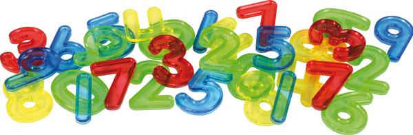Комплект от 30 броя прозрачни цветни цифри. Забавен и интересен начин за изучаване на цветове и цифри. Могат да бъдат ползвани за изработването на шаблони, както и в комбинация със светеща маса за допълнителна сетивна стимулация.