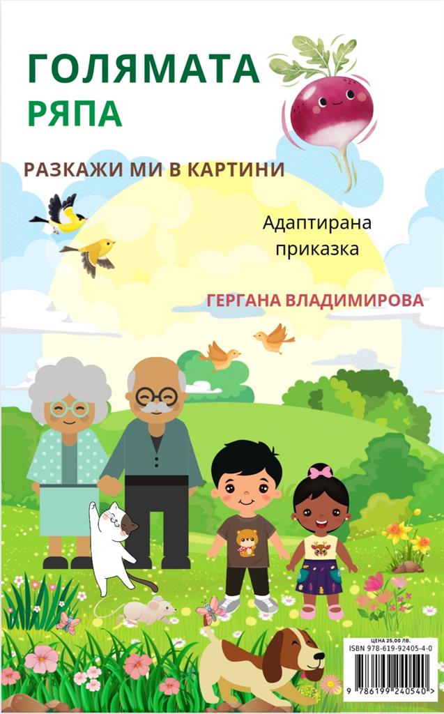 „Разкажи ми в картини: адаптирани приказки за деца със специални нужди“ е чудесен инструмент за обучение, забавление, стимулиране на умственото развитие, обогатяване на езика и развитието на комуникацията. Книгата включва приказките „Изгубената ръкавица“ и „Голямата ряпа“, адаптирани от Гергана Владимирова (логопед).