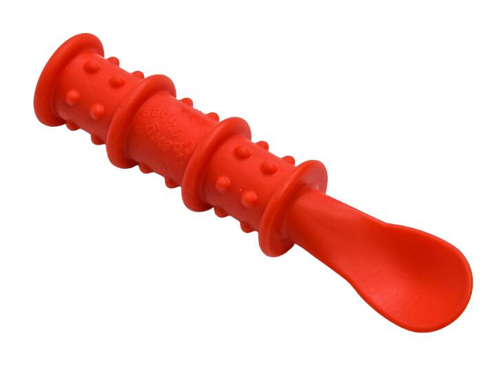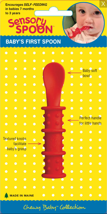 Релефна обучителна лъжичка за бебета, насърчаваща самостоятелното хранене.