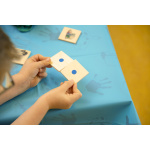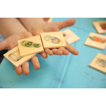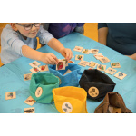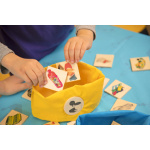 Съдържание: 50 дървени плочки с фотопечат, 30 предмета, изработени от голямо разнообразие от материали, 6 торби за боклук 100% памук (по 1 жълт, зелен, син, кафяв, черен, неутрален), 6 клипса за символи, 1 зар, 6 х 50 лепенки с точки, инструкции, в кошче за боклук като кутия за съхранение. Обхватът на доставката може да варира.