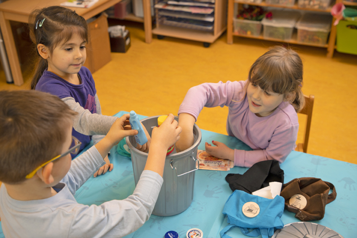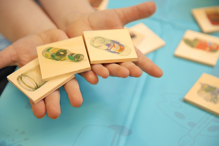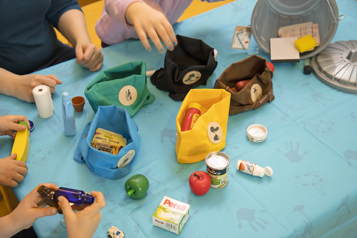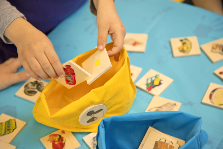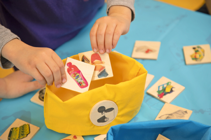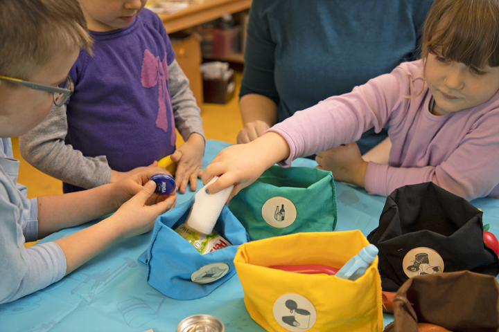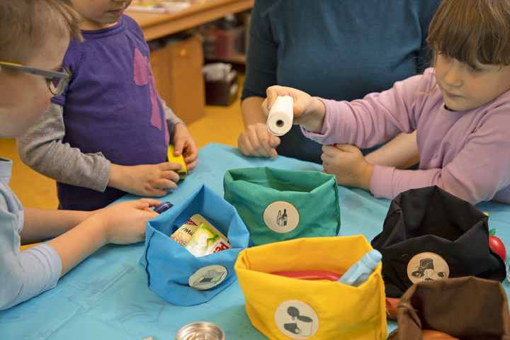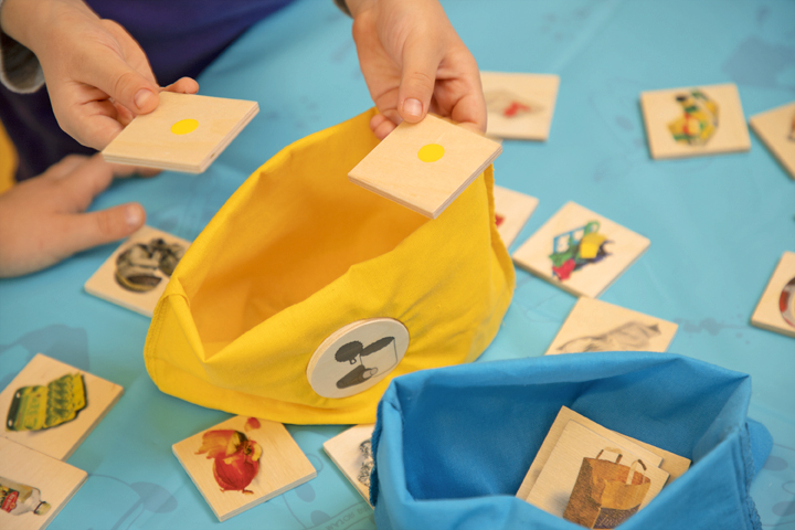 Игра, която запознава децата с темата за рециклиране на отпадъците и опазване на околната среда. Те трябва да сортират предметите в петте торби за смет (компост, опаковки, битов отпадък, хартия, стъкло). С помощта на стикери с цветни точки торбите могат да бъдат означени в съответствие с местните особености за маркиране на контейнерите за разделно събиране на отпадъци.