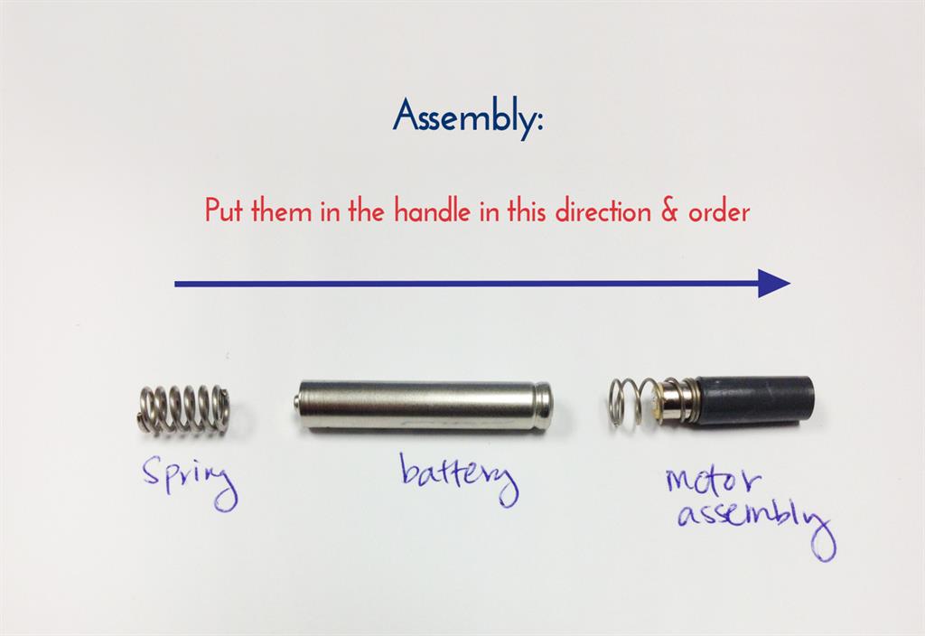 Включва: 1 моторче, 1 батерия, 2 пружини, 1 копче