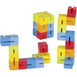 Дървена играчка пъзел. Отделните елементи са захванати с ластик, което позволява множество конфигурации. Чудесно забавление за децата по време на път или когато им се налага да чакат някъде.