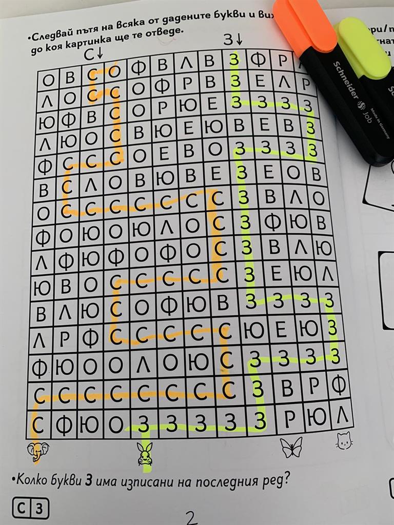– зрително внимание и буквен гнозис – откриване на букви, срички, думи