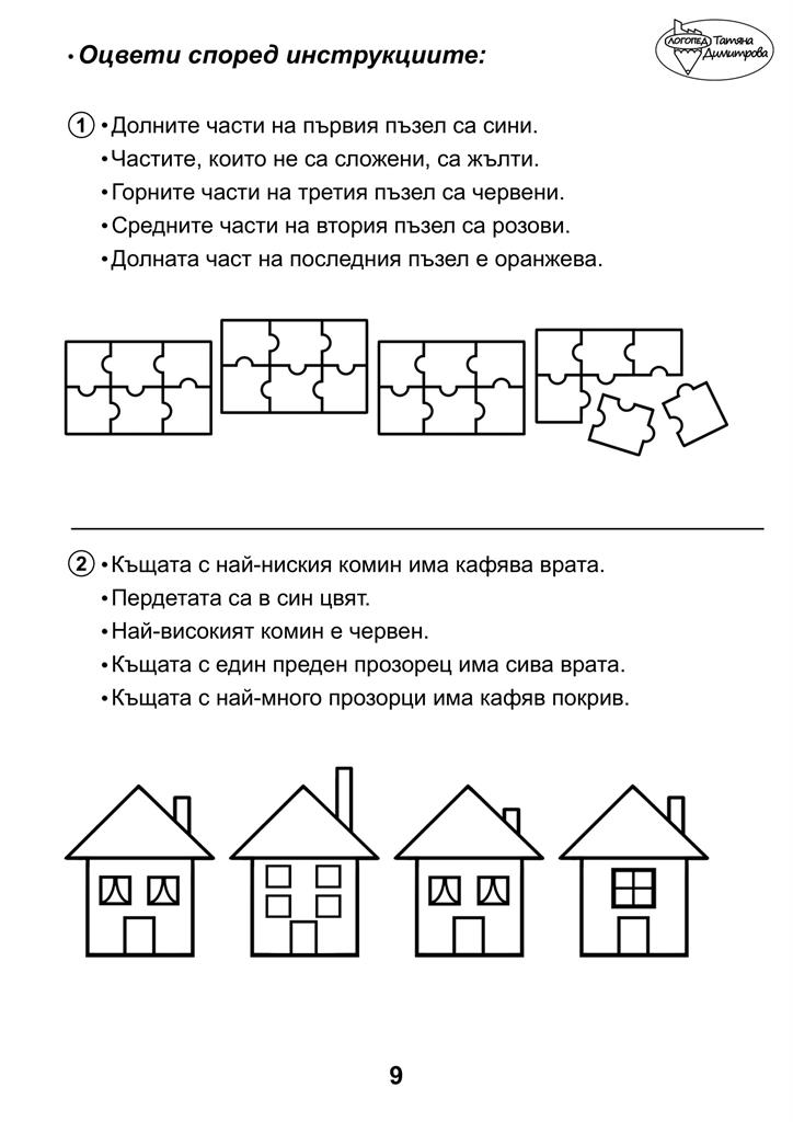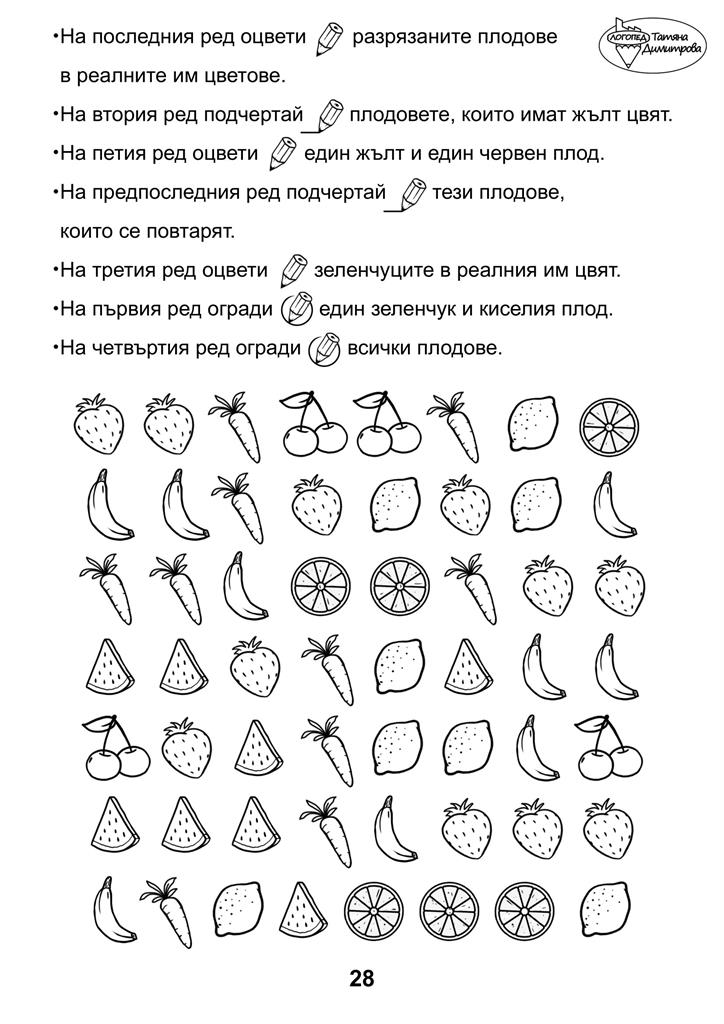 Помагало с авторски задачи и илюстрации за развитие на зрителни възприятия, пространствени отношения, графоморни умения. Подходящо за деца със специални образователни потребности. Черно-белият формат дава възможност да се пише и оцветява в сборника. Следването на поредността на задачите в помагалото Не е задължителна.