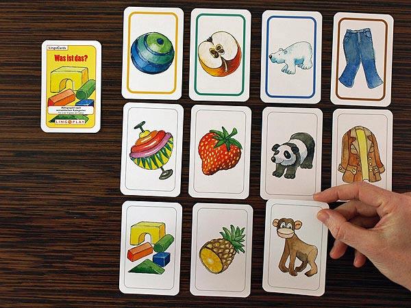 В играта са включени следните семантични категории: превозни средства, играчки, дрехи, мебели, домашни животни, диви животни, плодове и професии. Картите от различните категории се подреждат в отделни (осем) купчинки. Началните карти от всяка категория имат цветна рамка. На останалите карти са изобразени мотиви от различните семантични категории. Например: началната карта на категория ‘професии’ е с картинка на фермер. Към тази категория принадлежат всички карти, на които са изобразени професии. Ако играч не може да постави своя карта под съответната купчина, той тегли нова карта от нея. Играчът, който пръв успее да подреди картите си по категориите, печели играта. За да улесните играта, може да включите не всички, а само избрани семантични категории.