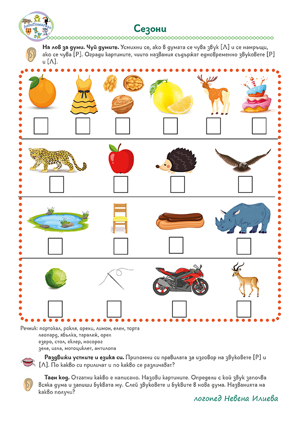 + Структурирани работни листове за диференциация на [Р] и [Л]