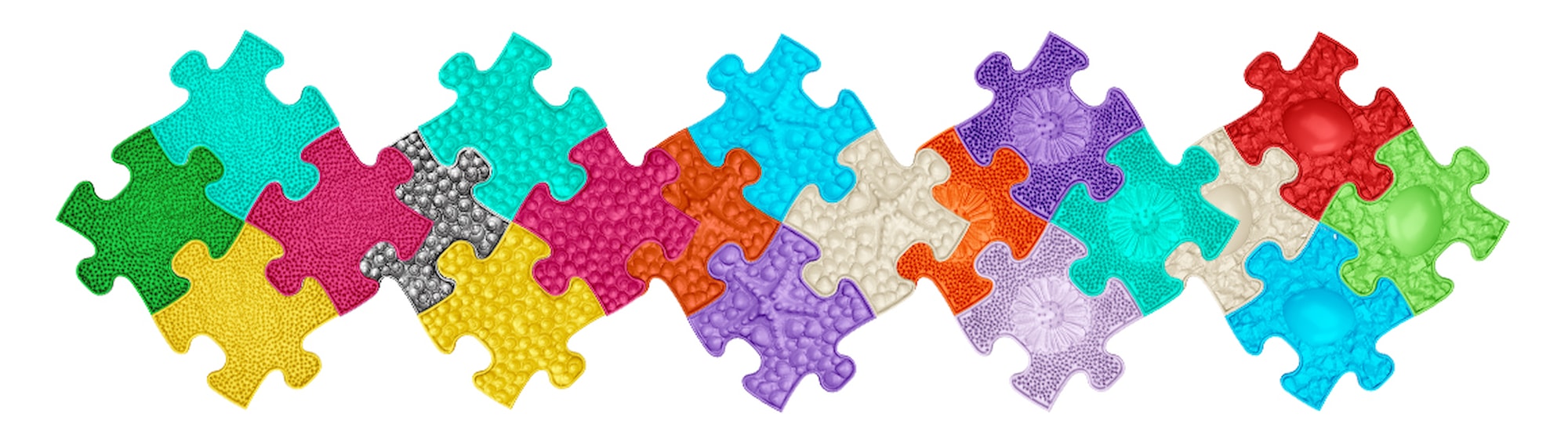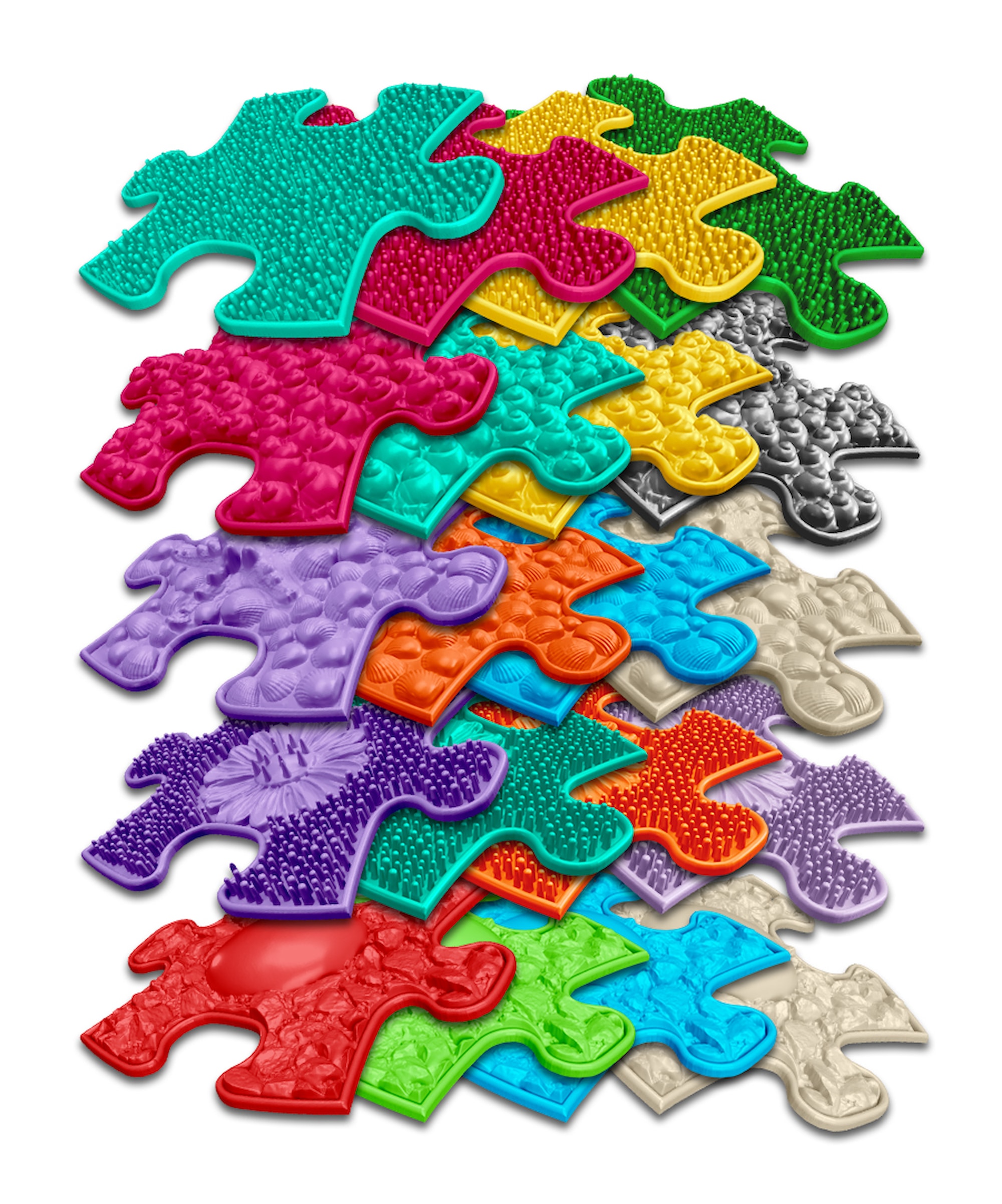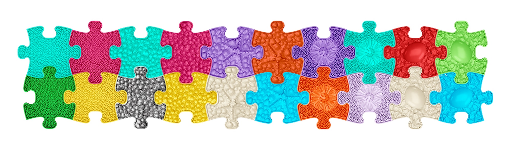 Голямо сензорно приключение с малки пъзел елементи. Те са умалена версия на големите ни сензорни пътеки пъзел. Децата могат са правят собствени тактилни килимчета, като с това развиват едновременно фината моторика, творческото мислене, научават цветовете и стимулират тактилните си възприятия. А когато килимчето им е готово, те могат да се разходят с боси крачета върху него.