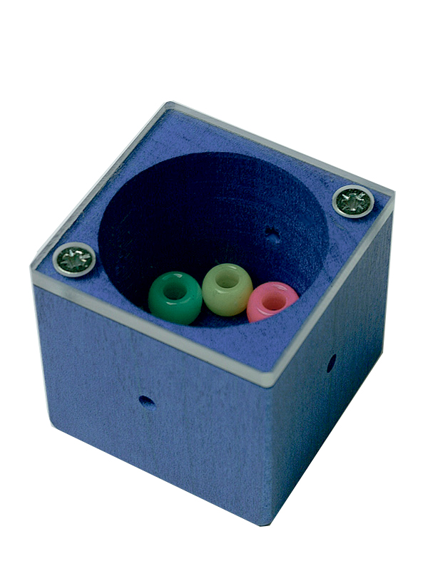 Съдържание / материали / размери: 16 цветни, лакирани, дървени кубчета (с дължина на страната 4 см); дървена кутия от бук с капак от плексиглас (19х19х6 см).