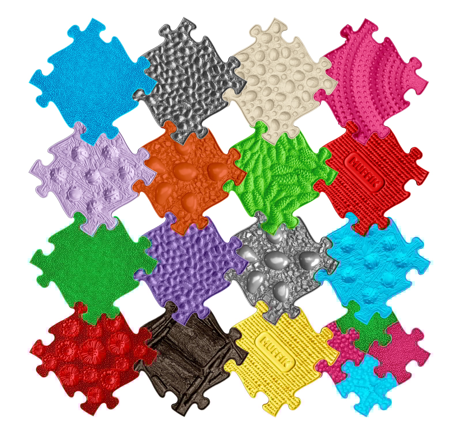 Ортопедична сензорна пътека във формата на пъзел. Комплектът включва гъвкави цветни пъзел плочи с различни текстури и релеф и в две степени на твърдост (меки и твърди). Това позволява бързо и лесно сами да проектирате сензорните предизвикателства според нуждите и желанията. Може да се използва както за забавление, така и с терапевтични цели.