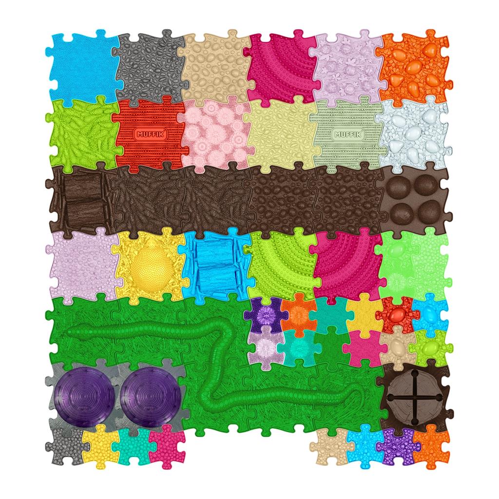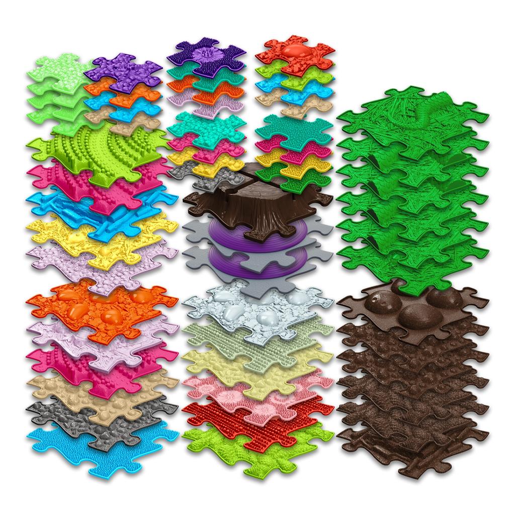 Ортопедична сензорна пътека във формата на пъзел. Комплектът включва 56 гъвкави цветни пъзел плочи с различни размери, текстури и релеф и степени на твърдост (меки и твърди). Включва също два диска Rotana за забавно въртене, светещ в тъмното комплект, пънче за любопитни изследователи и сензорна пътека Змия.