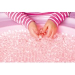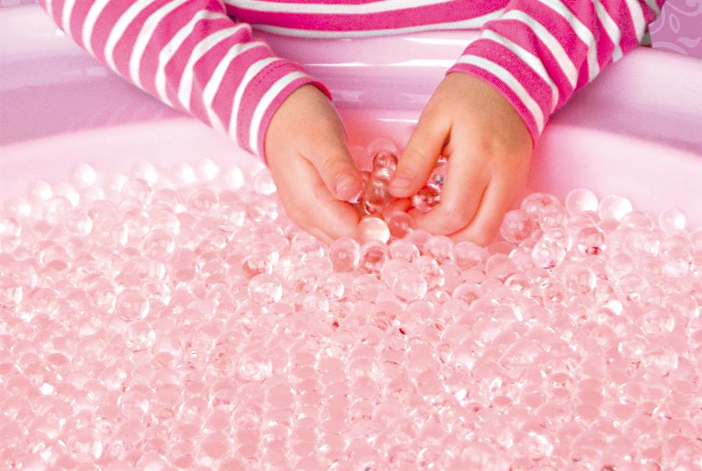 Серзорните перли са толкова примамливи и вънуващи – както за гледане, така и за докосване. Сложете малко количество от сухите гел перли в съд с вода. Те ще я попият бързо и ще увеличат обема си. Забавлението може да започне! Скрийте малки предмети в съда и накарайте детето да ги открие чрез опипване с ръце или крака. Ако съдът е прозрачен, поставете го върху светещ панел и перлите ще засияят! Ако желаете да тренирате фината моторика и ловкостта на пръстите, опитайте да изваждате перлите с пръсти или с щипки или пинсети.