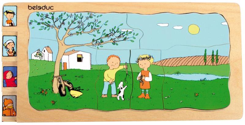 Многослоен пъзел. Всеки слой представя един от 4-те сезона, 4х8 елемента.