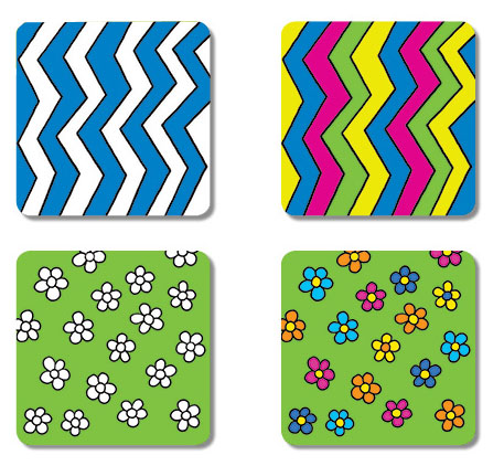 Съдържание: 24 цветни карти (размер 7,5 x 7,5 см); Две еднакви шарки в различни цветове образуват чифт карти • Инструкции.