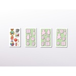 В комплекта са включени 6 сета със следните мотиви: животни, превозни средства, музикални инструменти, плодове, играчки и спортни стоки.