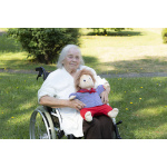 Материали: тялото е изработено от еластичен, лесен за почистване и приятен на допир плат, 100% полиестер. Ръчно пране с вода до 30 градуса. Пълнеж – зърнест гранулат. Дрехи – 100% памук.