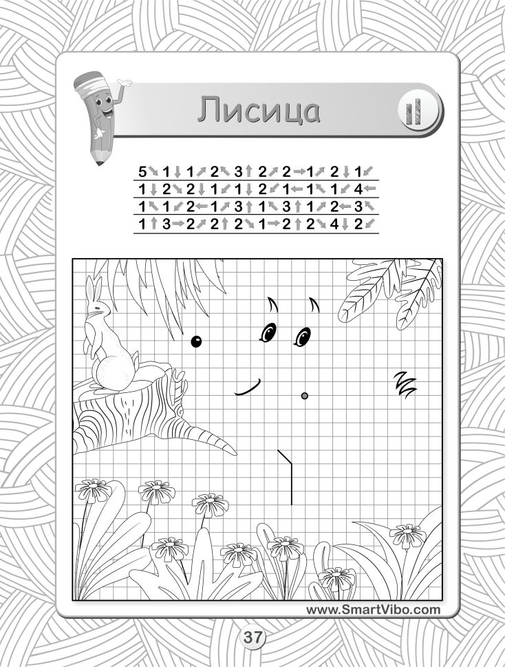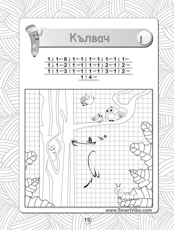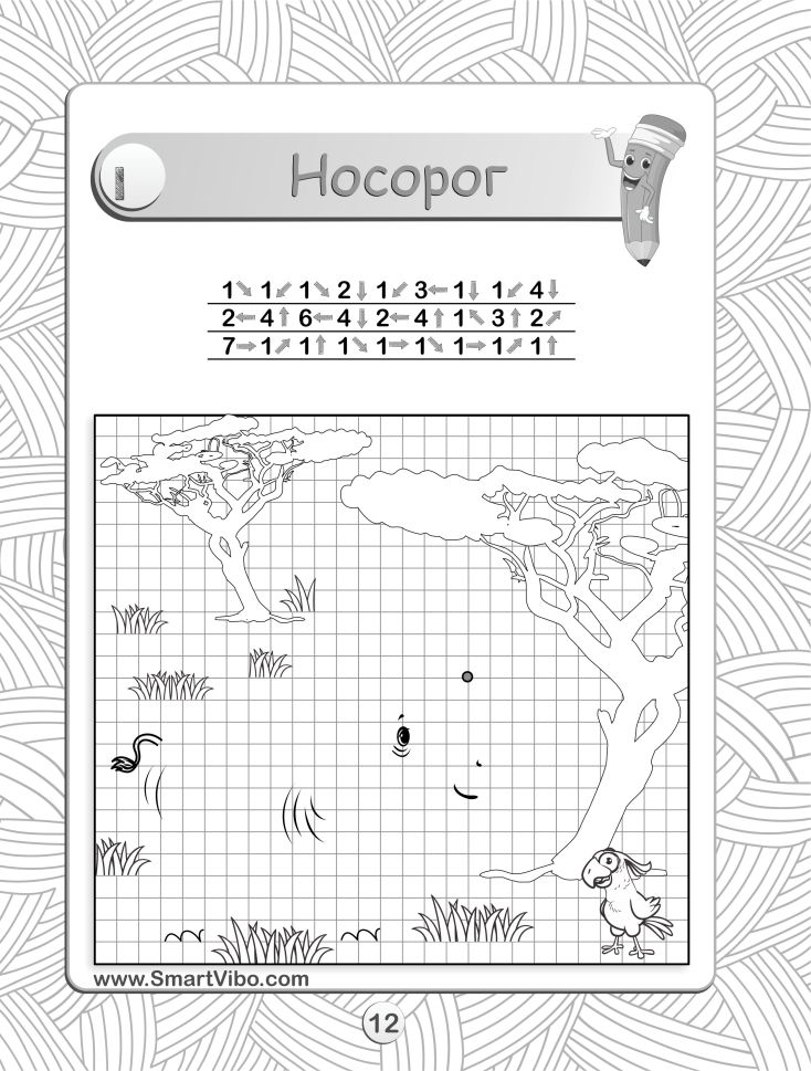 В Скрити картинки ПОСОКИ са събрани 85 занимания за откриване на скрити картинки чрез последователно чертаене на линии, започващи от посочена начална точка със зададени брой квадратчета и посоки.