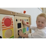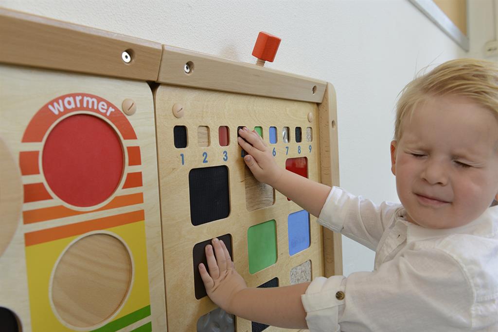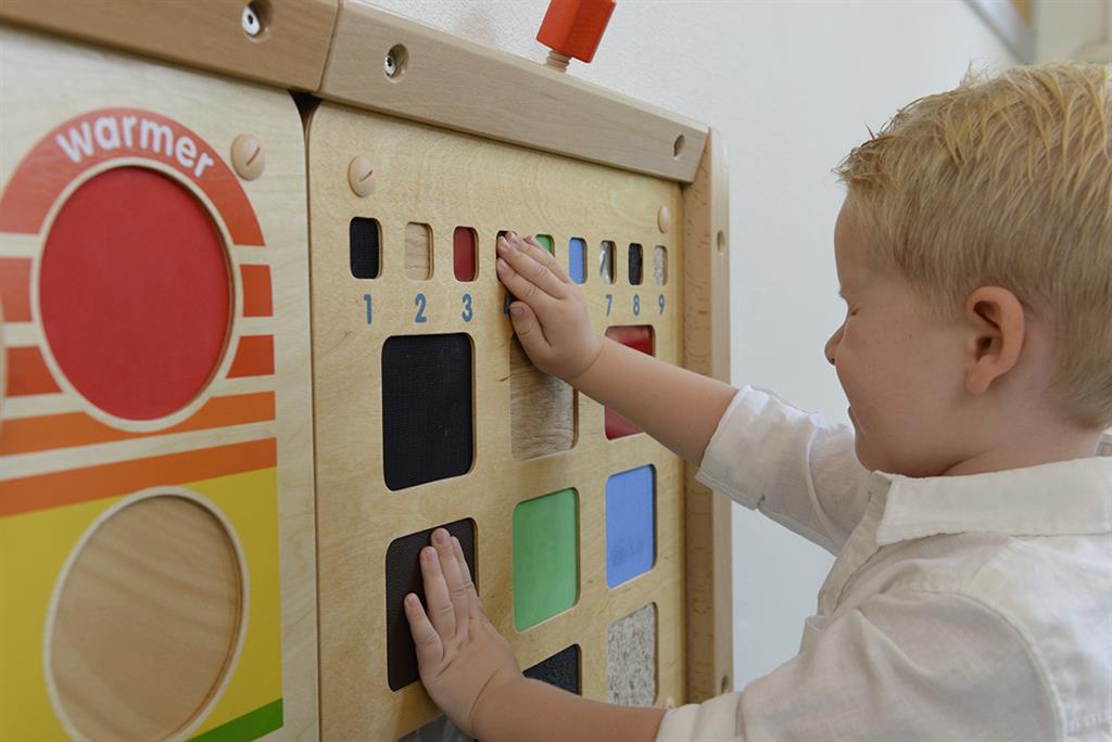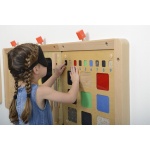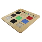 Стенният панел за игра „Докосни и открий“ предоставя богато сензорно преживяване, което насърчава децата да изследват различни текстури чрез допир. Чрез сравняване и описване на повърхности като гладки, грапави, меки или студени, децата развиват тактилното си възприятие, концентрацията и езиковите умения. Панелът съчетава игра и обучение, като стимулира активно участие и любопитство.