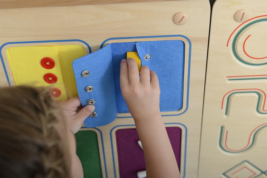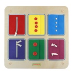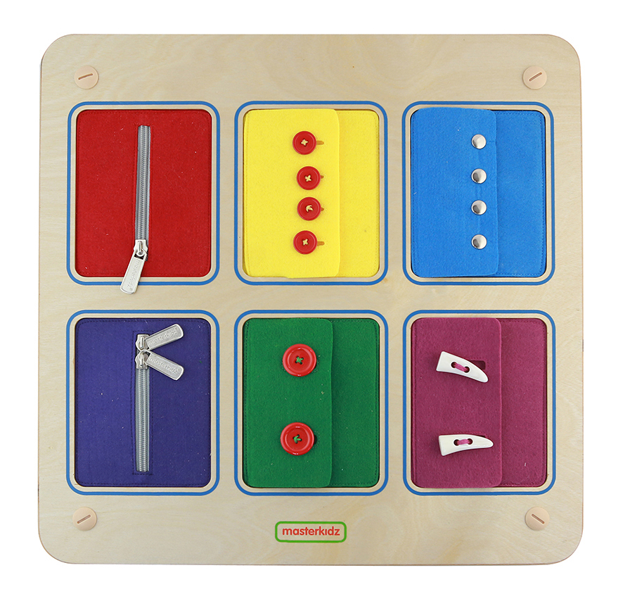 Стенният панел Закопчаване е практично и интерактивно решение за развитие на фината моторика и умения от ежедневието чрез игра. Децата упражняват различни видове закопчаване – копчета, ципове и тик-так копчета, като по този начин изграждат самостоятелност и увереност при обличане. Панелът съчетава обучение и игра, като стимулира координацията и логическото мислене.
