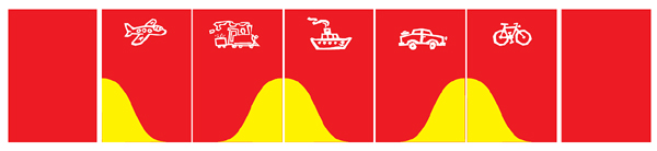 Комплектът съдържа 7 пана, от които 2 едноцветни и 5 с декоративен елемент (самолет, влак, кораб, автомобил, велосипед)