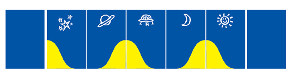 Комплектът съдържа 7 пана, от които 2 едноцветни и 5 с декоративен елемент (звезди, планета, летяща чиния, луна, слънце)