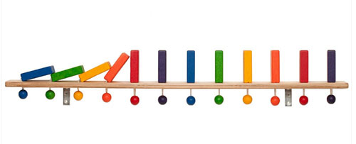 Панел Цветно домино с 12 елемента. Когато дръпнете топчето под даден елемент, той се изправя. Децата бързо разбират как действа принципът на доминото. Играта може да стане още по-забавна, ако поставите два или повече панела един до друг.